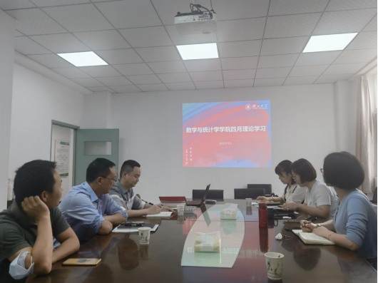 4月25日下午,数学与统计学学院在二楼会议室召开党委理论学习,专题学习国家安全观、安全生产重要论述、习近平总书记重要讲话、党的有关文件精神、湖北省以及湖北大学相关文件精神。院领导班子、党委委员参加此次会议。院党委书记周霞主持会议。