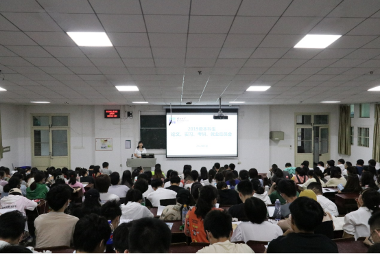向妮副院长就学院概况、招考政策、奖助体系等方面向2019级考研学生作动员宣传。她向同学们详细介绍了我院学科结构、师资队伍和学术交流情况,让同学们更加了解我院研究生培养模式和学科实力,提高了同学们报考本院研究生的意愿。