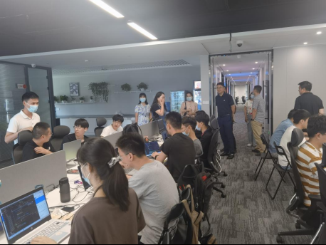 会后,一行人参观了武汉金山办公的日常办公区和党员活动区,看望慰问了正在该公司参加“训练营”的2023届毕业生。