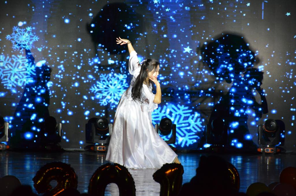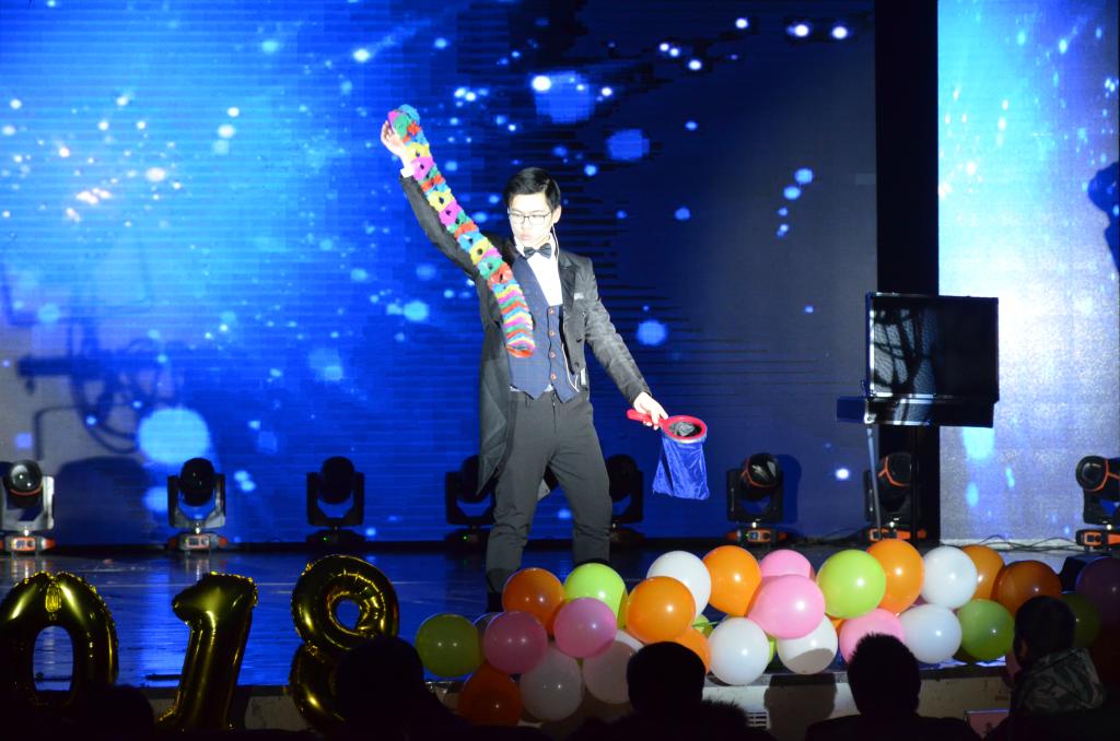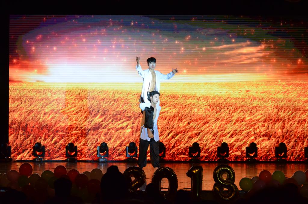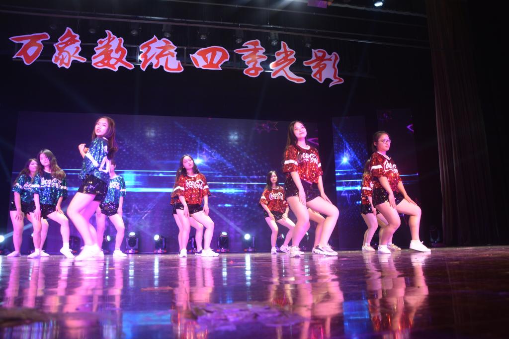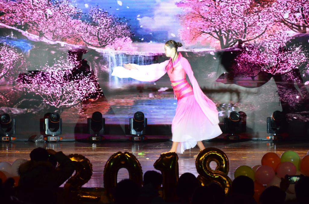 本次元旦晚会以“万象数统,四季光影”为主题,以个性鲜明的独舞为引,将晚会分为“春”、“夏”、“秋”、“冬”四个部分。精彩的歌曲、舞蹈、小品应有尽有,其中欢快的爵士串烧《HOT》更是点燃了所有在场观众的热情,让人真真实实的感受到了“夏”的魅力。特色节目走秀《summer fire》也是赢得一众好评,紧张刺激的魔术表演吸引了所有在场观众的目光。班主任们精彩的的鬼步舞则让在场所有学生大吃一惊,展现出了与课堂上完全不同的一面,让同学们领略了老师们不同的一面。最终,在17级新生们的合唱《想你的365天》的歌声中,晚会落下了帷幕。