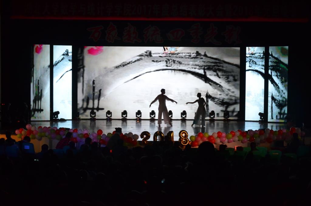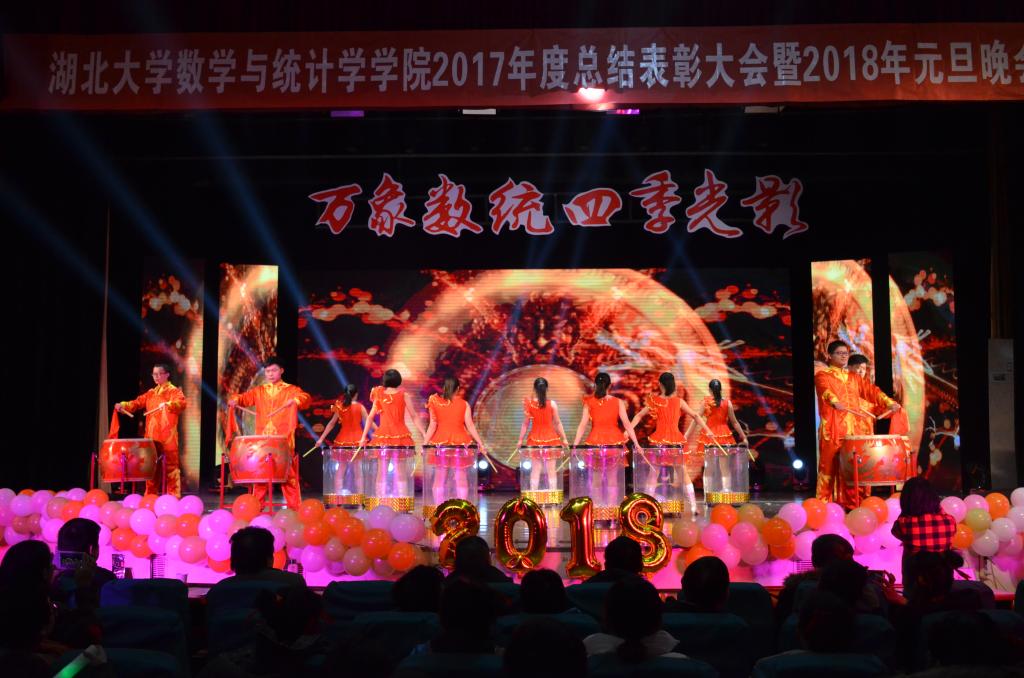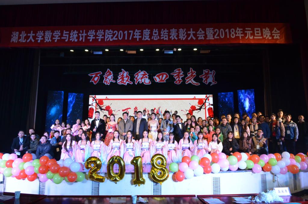 2017年12月17日,数学与统计学学院2017年度总结表彰大会暨2018年元旦晚会在湖北大学小礼堂成功举办。学院领导班子成员,部分学院党委副书记、团委书记等嘉宾出席了晚会,晚会到场观众共千余人。