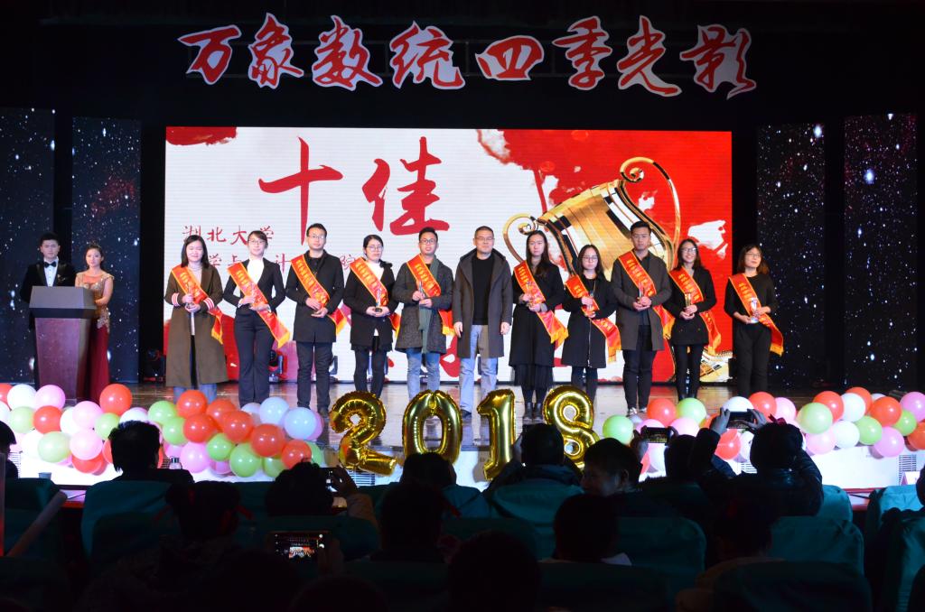 晚会从2017年度总结表彰大会开始,总结过去一年的工作,共表彰最强大脑挑战赛擂主,“数学与统计学学院十佳大学生”,"数学与统计学学院优秀共产党员"等共计二十人。