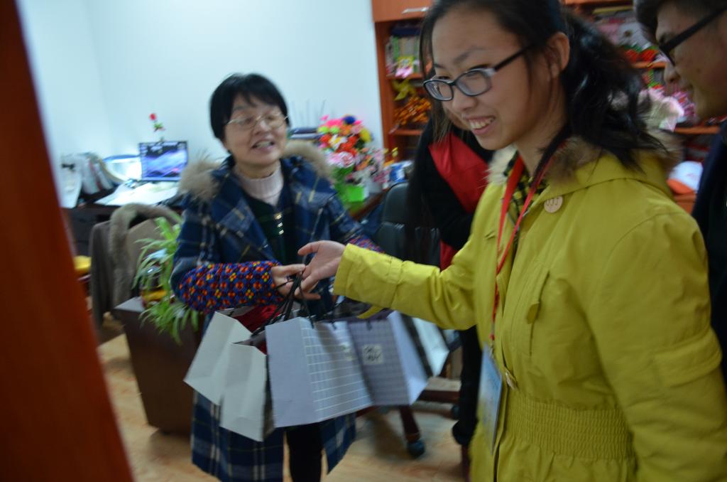 在本次活动的开始,院学工办老师献给紫阳街阳光家园谢园长一捧鲜花,并带领志愿者为每一位社工赠送了红色围巾,以表示对各位社工多年的志愿服务的尊重与敬佩。随后,紫阳街阳光家园社工致词表述了志愿服务的根本意义所在,并回顾了暖阳志愿服务队的成长历程,肯定了历年来暖阳志愿服务队在紫阳街阳光家园的志愿服务,志愿者们都受到了极大的鼓舞。接着服务对象以一首《至少还有你》作为礼物送给志愿者们,看着服务对象尽力的唱好这首歌,志愿者们一边鼓掌打着拍子,一边也在偷偷擦拭眼角。