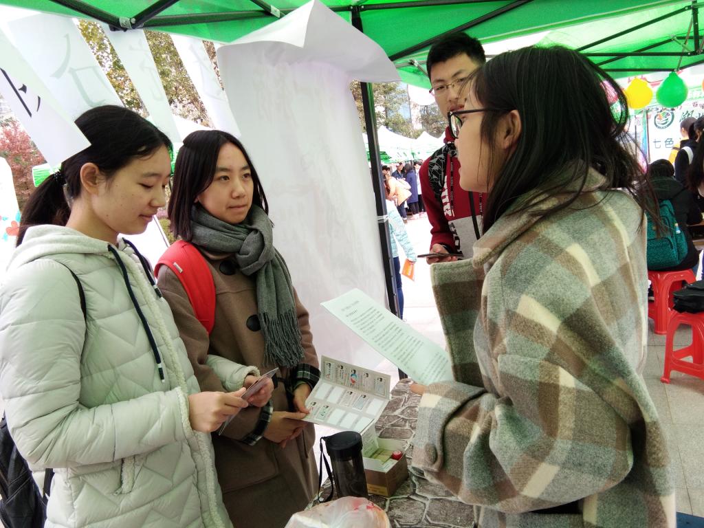 活动当天,志愿者们早早的完成了会场布置。数统院设置服务展示区:由一位项目主讲人负责,主要使同学们了解数统院暖阳志愿服务队和小书童支教团;游戏体验区:由两名学生负责,模拟为残障人士及留守儿童授课,还有公益问答和汉诺塔等游戏。数统院志愿者们配合前来参加活动的同学完成各环节,继承了雷锋精神,宣传了数统院志愿服务活动。