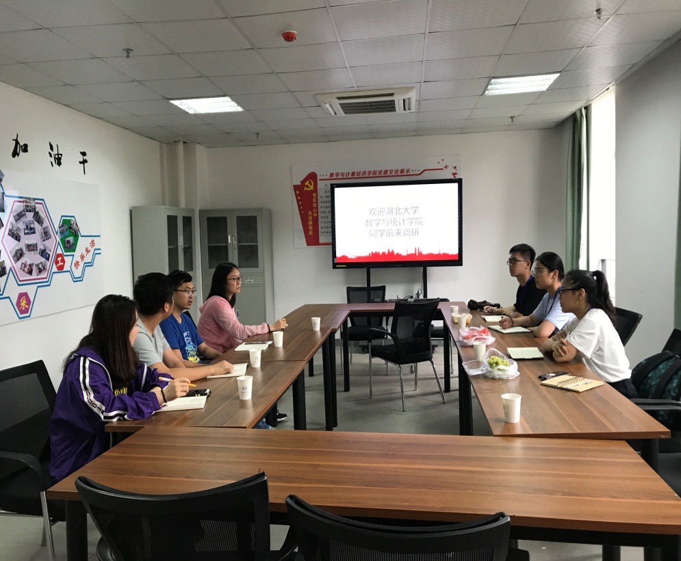 6月1日下午,湖北大学数学与统计学学院社会实践调研长沙组赴湖南大学进行学生交流与调研活动。于下午三点半左右,交流活动正式开始。