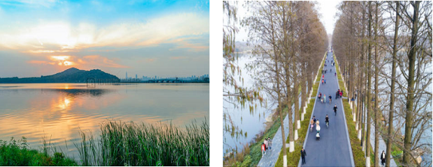 East Lake, the biggest scenery tourist attraction in Wuhan and also the largest lake within a city in China, is located on the south bank of the Yangtze River and in the east suburb of Wuchang. It covers an area of 87 square kilometers (33 square kilometers of water area) that is five times greater than the area of the West Lake in Hangzhou .The East Lake Scenic Area was formed from many famous scenic spots along the bank. The six major ones are Tingtao (Listening to Surging Waves), Mo Hill (Millstone Hill), Luoyan (Diving Wild Goose), Baima (White Horse), Chuidi (Playing Flutes), and Luohong Hills. East lake green way is one of the most beautiful green way in the world.